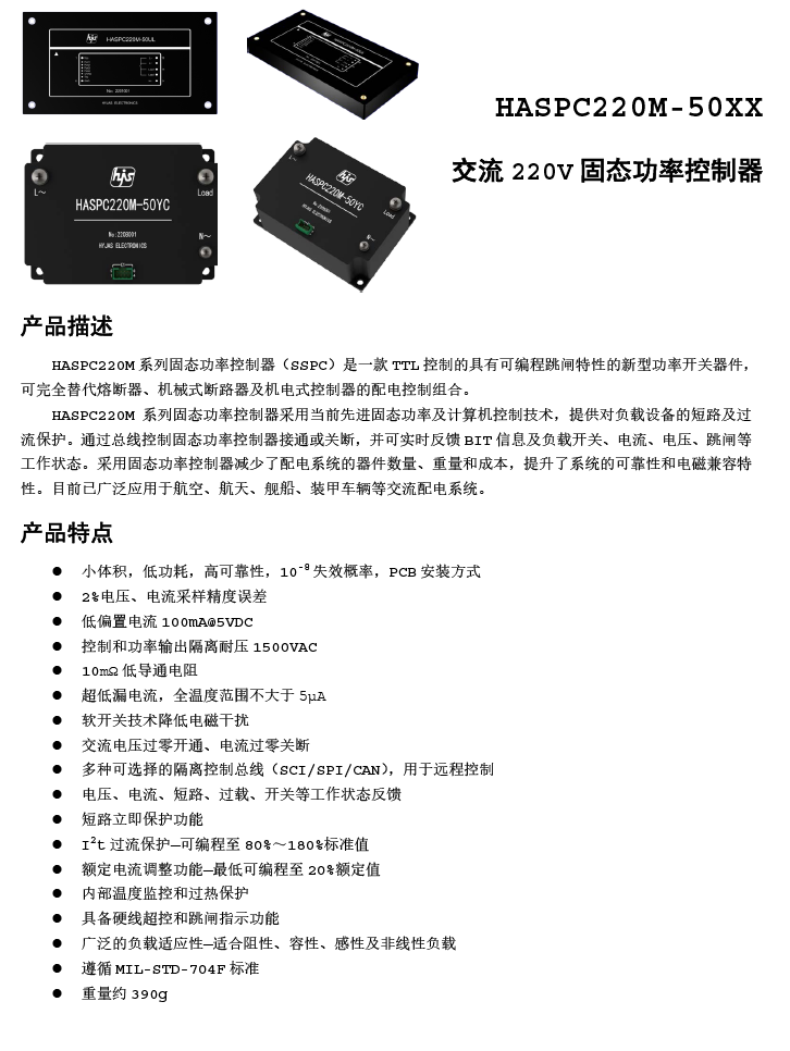 高壓直流SSPC。額定電壓DC800V,額定電流50A,偏置電壓DC5V,具備負(fù)載自適應(yīng)、容性負(fù)載管理、反時(shí)限保護(hù)、啟動(dòng)或在線短路保護(hù)、電壓電流精準(zhǔn)采集上報(bào)等功能,殼體式安裝方式,全國(guó)產(chǎn)。