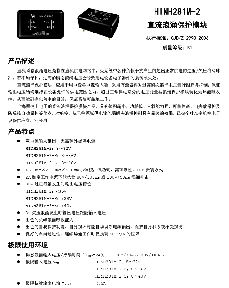額定DC28V/2A,全國產(chǎn)過壓浪涌保護(hù)模塊。滿足GJB298、GJB181、DO160E等標(biāo)準(zhǔn),PCB安裝。