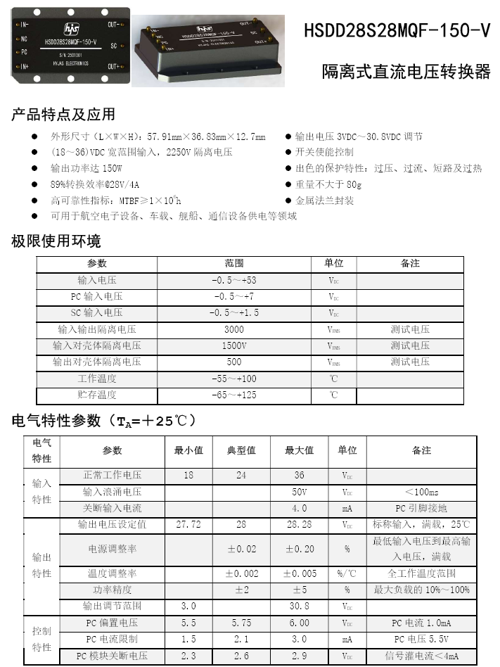 DC18-36V輸入,DC10-30.8V可調(diào)節(jié)輸出電壓范圍,150W隔離式直流電壓轉(zhuǎn)換器。